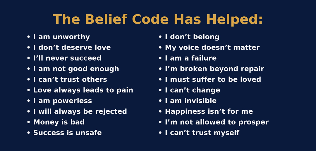 The Belief Code is the most advanced system created by Dr. Bradley Nelson. While the Emotion Code clears trapped emotions, and the Body Code addresses energy and physical imbalances, The Belief Code identifies and rewires the subconscious belief systems that quietly control your life.